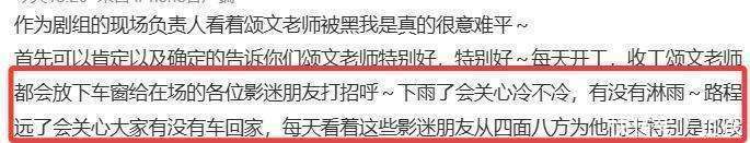 就在大家都在声讨张颂文的时候,《谷雨》剧组的人出来力挺他了。有个自称演员兼现场制片的杨涛,写了很长一篇文章来夸张颂文的好。他说张颂文会关心粉丝淋雨怎么回家,还会安排车接送粉丝呢。这就像是在一片骂声中突然出现一个为英雄说话的人。可是啊,这事儿没那么简单就平息下去。